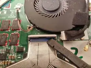 Используя лопатку, отключите разъем, потянув его от гнезда, параллельно материнской плате.
