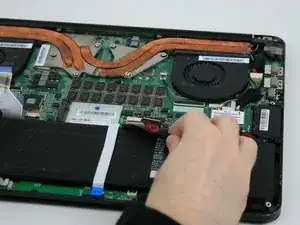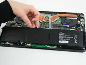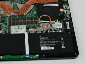 Потяните широкий разъем батареи в сторону батареи, чтобы отключить его от материнской платы.