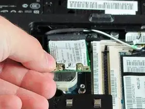 Отключите антенны от карты Wi-Fi, подняв золотые концы проводов с контактов на карте Wi-Fi.