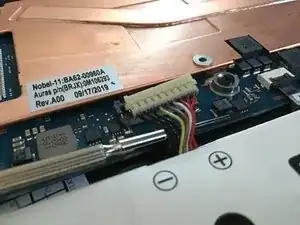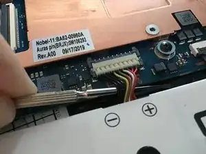 Используйте лопатку, чтобы аккуратно приподнять провода батареи и удалить батарею.