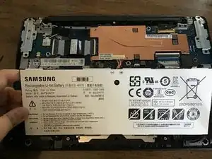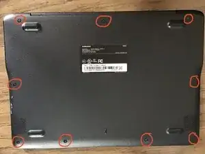 В этом руководстве показано, как удалить батарею на Samsung Chromebook X500C13-K02USA. Для этого потребуется снять нижнюю панель.