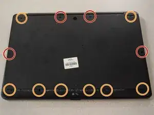 Используйте отвертку JIS #0, чтобы удалить 8 винтов, окружённых оранжевым.