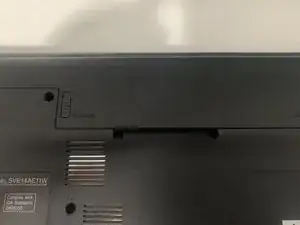 Для начала переверните ноутбук и найдите батарею.