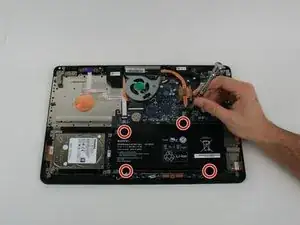 Отвинтите одиннадцать винтов длиной 6 мм с задней панели на нижней стороне ноутбука крестовой отвёрткой Phillips #0.