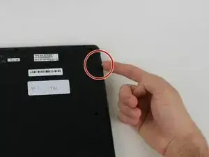 Отвинтите один винт длиной 4 мм с задней панели на нижней стороне ноутбука крестовой отвёрткой Phillips #0.