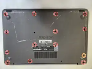 Удалите 13 винтов размером 8 мм с нижней стороны устройства с помощью отвертки Phillips #00.