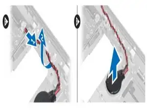 Отключите кабель батареи типа "таблетка". Подденьте батарею типа "таблетка" вверх и извлеките ее из компьютера.