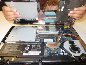 Руководство по замене батареи Toshiba L40-A. При замене батареи ноутбука обязательно надевайте перчатки при манипуляциях с внутренней частью устройства.