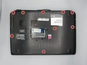 Переверните ноутбук, чтобы получить доступ к задней панели.