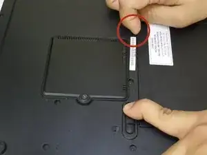 Переместите меньший переключатель над батареей в положение разблокировки любым пальцем.