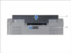 Сдвиньте фиксатор отщёлкивания батареи, пока он не зафиксируется.