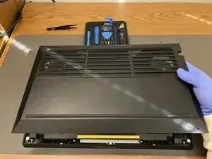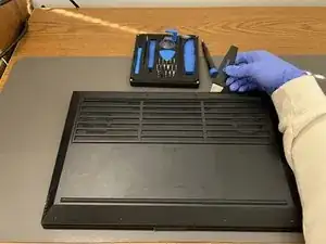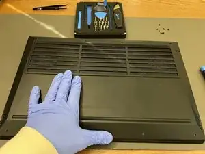 Установите нижнюю часть корпуса обратно на ноутбук и надавите на каждый угол до тех пор, пока не услышите щелчок или не станет очевидно, что корпус снова запечатан.