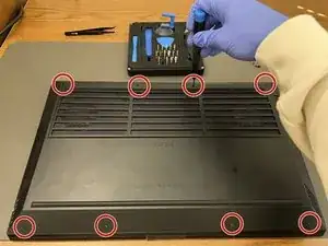 Удалите восемь винтов с задней панели с помощью отвертки Phillips #00.