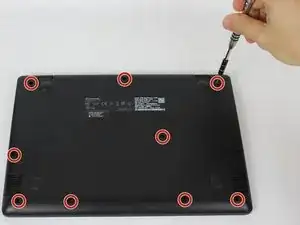 Используйте крестовую отвёртку №0 для выкручивания девяти винтов длиной 6 мм с большой задней панели.