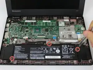 В этом руководстве описывается процесс снятия батареи в ноутбуке Lenovo 100s Chromebook-11IBY. Это позволит Вам заменить или обновить батарею.