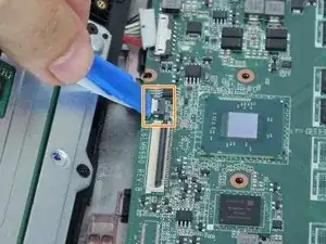 Откройте шлейфовый разъём ZIF клавиатуры, чтобы отсоединить гибкий кабель.