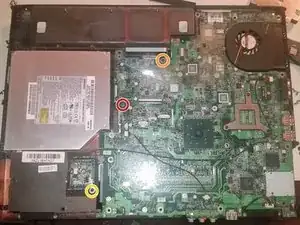 Снимите винт средней длины, фиксирующий материнскую плату к основанию.