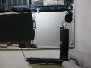 Осторожно отсоедините разъём от правой стороны сборки динамиков.