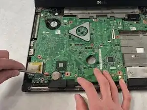 Используйте нейлоновую лопатку, чтобы вытащить батарейку CMOS из материнской платы.