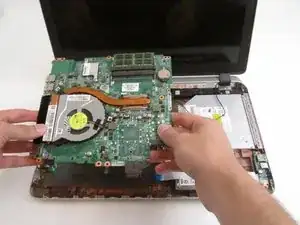 Удалите материнскую плату из устройства после того, как убедитесь, что она не зацеплена кабелями или разъёмами.