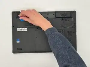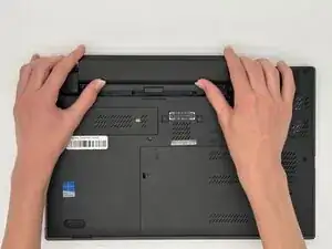 Ориентируйте ноутбук так, чтобы выступ батареи был обращён от вас.