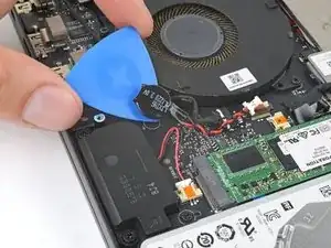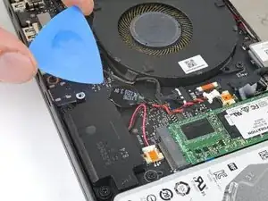 Если батарейка не поддаётся, приложите нагретый iOpener к батарее на 30 секунд, чтобы размягчить клей.