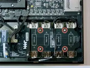 Снимите следующие винты, закрепляющие правую батарейную плату к основному корпусу: