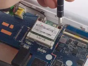 Удалите беспроводной адаптер из ноутбука после удаления винтов.