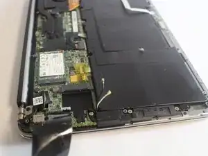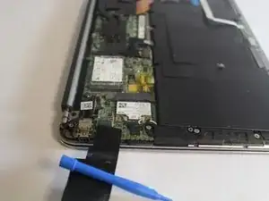 Используйте пластиковый инструмент для вскрытия iFixit, чтобы отсоединить два провода, подключенных к беспроводному модулю.