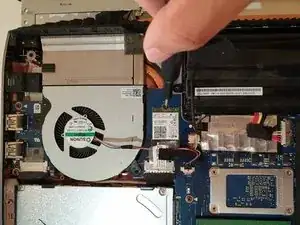 Открутите один винт 3 мм Phillips #00, фиксирующий беспроводную карту.