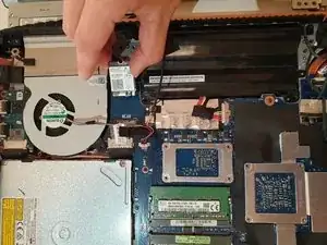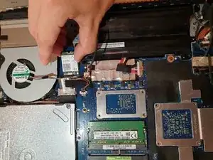 Ручками отщёлкните беспроводную карту, вытянув её в направлении экрана.
