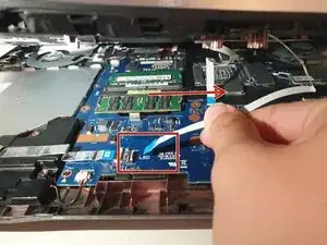 С помощью антистатического инструмента отсоедините все 3 ленточных кабеля. Для этого поднимите кабель вверх и выньте его.