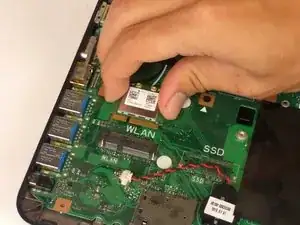 Легко вытяните беспроводную карту из слота, держа ее параллельно материнской плате.
