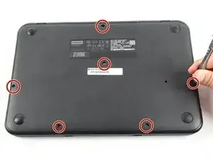 Используйте отвертку Phillips #1, чтобы выкрутить шесть винтов 6,6 мм на нижней панели.