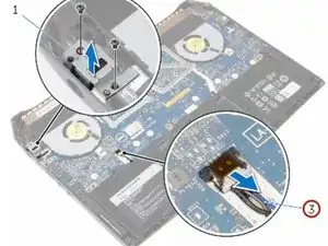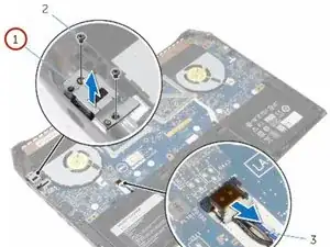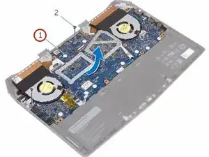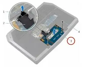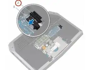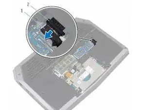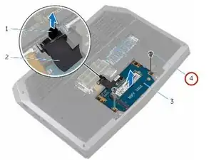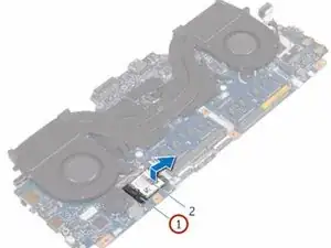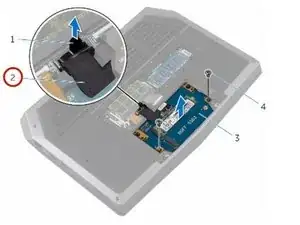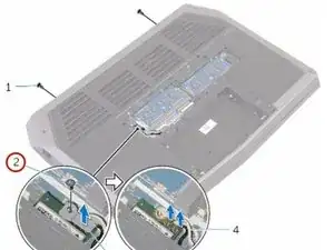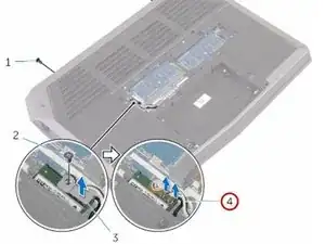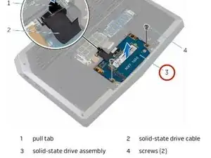Удалите винты, которые фиксируют сборку твердотельного накопителя к основанию компьютера.