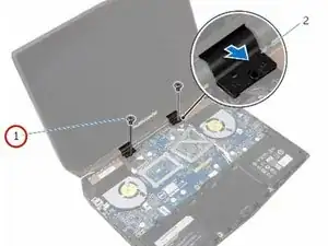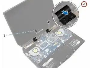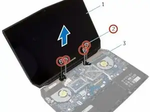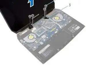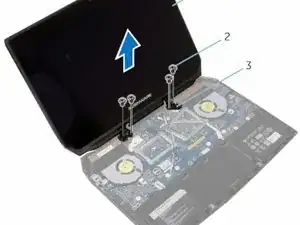 Снимите винты, которые крепят сборку дисплея к корпусу компьютера.