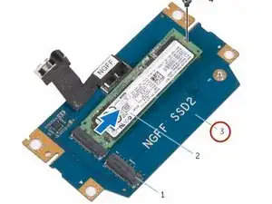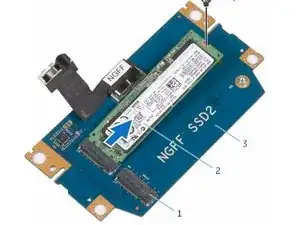 Верните винты, которые фиксируют сборку твердотельного накопителя к основанию компьютера.