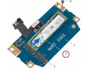 Удалите винт, который фиксирует твердотельный накопитель к сборке твердотельного накопителя.