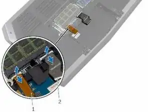 Поднимите защёлки и отключите кабели клавиатуры и подсветки клавиатуры от системной платы.