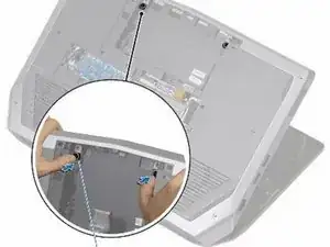 Удалите винты, которые фиксируют узел подставки для рук к основанию компьютера.
