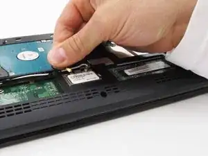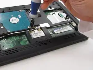 В этом руководстве Вы узнаете, как найти беспроводную карту в ноутбуке Gateway LT4004u и извлечь её. Как только задняя панель будет отделена, беспроводная карта станет сразу видна.