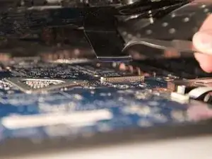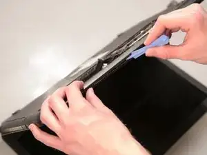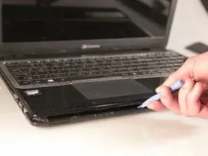 Отделите нижнюю панель от модуля тачпада, вставляя пластиковый инструмент между ними по всем четырём сторонам.