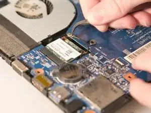 Удалите один винт Phillips #00 длиной 2,9 мм, удерживающий беспроводную карту.