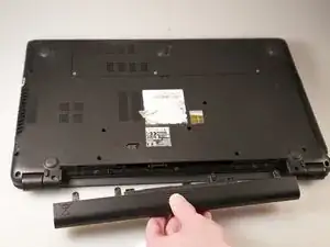 Найдите защёлку фиксации аккумулятора и сдвиньте её в другую сторону.