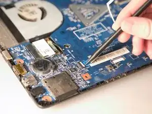 Отключите два ZIF-разъёма, которые соединяют модуль тачпада с материнской платой.