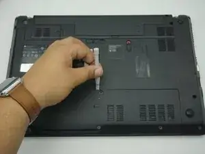 Удалите четыре винта с крестообразным шлицем #0 с сервисной крышки на задней панели ноутбука.