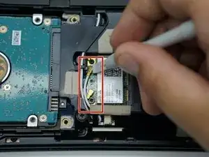 Подденьте два коаксиальных антенных кабеля от беспроводной карты пластиковой лопаткой.