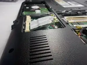 Первым делом необходимо снять панель, закрывающую беспроводную карту, отвинтив винты.