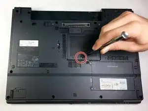 С помощью отвертки Phillips #1 открутите винт 5 мм на нижней стороне ноутбука.