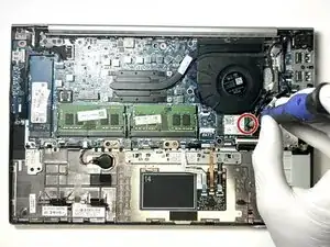 Используя отвертку Philips #1, удалите один винт 2,5 мм, который удерживает беспроводную карту.